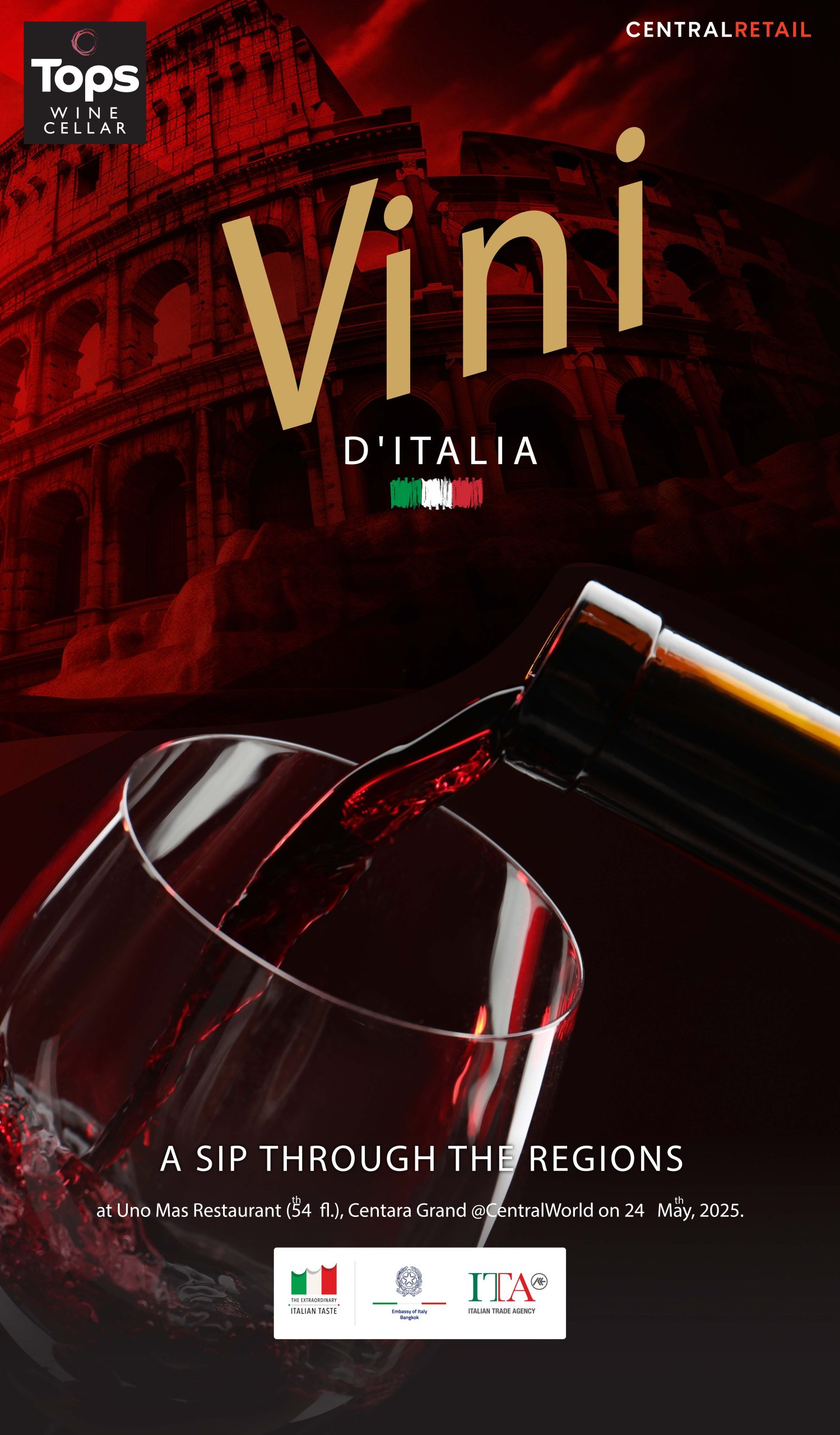 Exclusively for CENFINITY members who receive this SMS and complete the designated registration form—join an exclusive tatsting of over 60 premium italian wines from 6 renowed regions. Discover Italy’s essence and stories, plus enjoy special event-only offers. Limited seats available.
